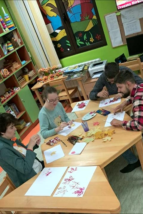 U okviru programa osamostaljivanja osobe sa intelektualnim invaliditetom su učestvovale u likovnoj radionici s ciljem razvoja kreativnosti, samopouzdanja i fine motorike. Kroz zajedničko oslikavanje učesnici su imali priliku da planiraju, izraze sopstvene ideje i sarađuju s drugima, što doprinosi razvoju odgovornosti, samostalnog donošenja odluka i osjećaja postignuća.